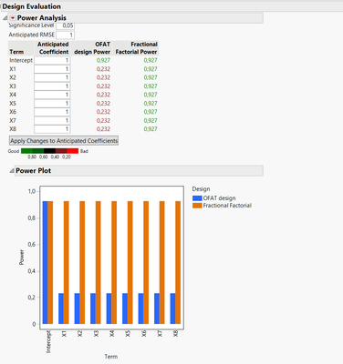 Even if you only want to screen main effects (and not even look at interactions), DoE is a better and more efficient methodology compared to OFAT, as you will have higher power (probability of detecting a significant effect if active), lower prediction variance, and better correlation structure between your inputs (you can see and compare the designs from the datatables sent earlier).