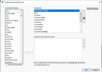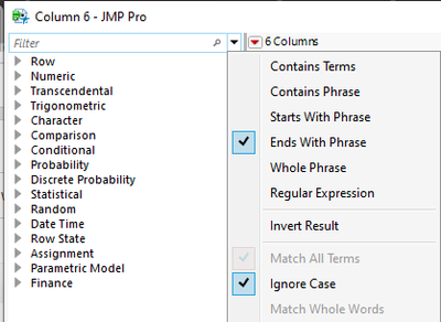 I'm currently (real time) teaching a class and have encountered a JMP problem I've never seen before. One student's calculator window appears to be missing all of the functions on the left side of the screen. The columns appear and the calculator section of the window appears but there are no functions to choose from and I can't figure out how to get them back. I don't see anything in the preferences for this and I've searched help and the forum and I'm stumped!