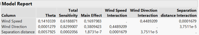 I believe that larger numbers (for example in the main effect column) mean that the factor has a more important effect on the response. Is that right? For example, in this figure, the more important factor would be the wind direction, and the effect of separation distance does not affect significantly the response. Is this interpretation alright?