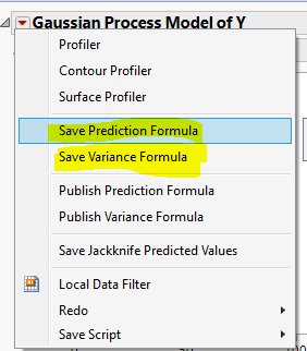 Before I rule out Hu, I save Prediction formula and Variance formula using the following two menu items.