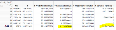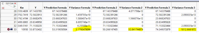 Also I save Prediction and Variance formulas from this model, and here is the screenshot around the last row. And notice how much variance increases.