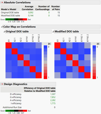You can compare the designs by using the platform Compare Designs (jmp.com)