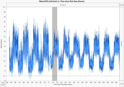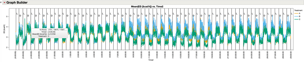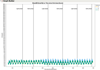 Variables( X( :Time2 ), Y( :Name( "EE-[kcal/h]" ) ), Overlay( :Treatment ) ),