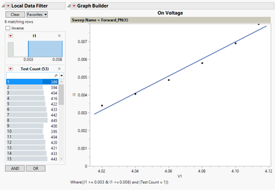 Variables( X( :V1 ), Y( :I1 ), Page( :Sweep Name ), Overlay( :Test Count ) ),