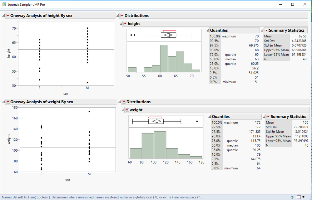 Again, the above JSL is a very basic illustration of this facility in JMP. Many other methods could have been used to accomplish this and far more complex outputs.