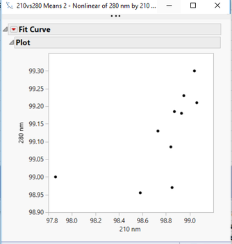 Go back to the data table that had your Orthogonal Fit. You had a column for 210 and a column for 280. You had 210 on the X-axis and 280 on the Y-axis.