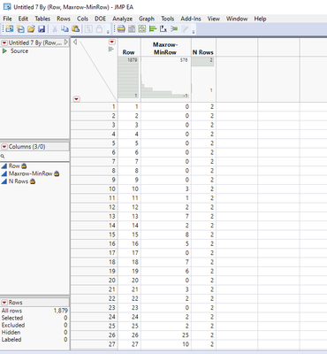 dt_stack << New Column("MinRowForRow", Numeric, "Continuous", Format("Best", 12), Formula(Col Min(Row(), :OriginalRowOrder)));