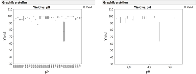 You could try to "bin" your pH values so that you have fewer boxes in the box plot, but still use a continuous x for the display. Create a new column with the following formula (assuming your x axis is in the column "pH"). Change the number to define your number of "bins" (in the case: 20), which will change the number of box plots and, in effect, their width..