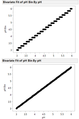Plot of pH vs binned pH, with 20 bins and 50 bins.