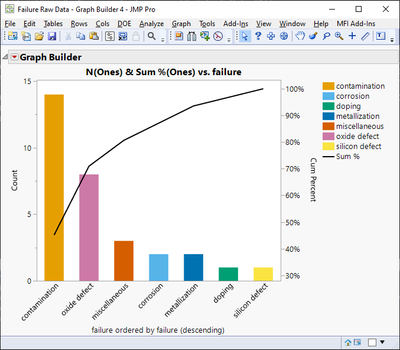 obj = dt << Pareto Plot(Cause(:failure));