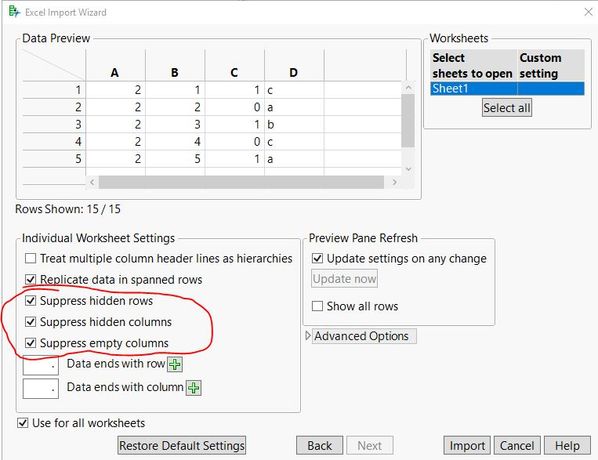 Now if I OPEN an Excel table, the default behavior is that I only receive the filtered Excel rows. To fix this problem, in the Excel Import Wizard, click the NEXT button at the bottom of the page. Clear the checkboxes that suppress the hidden rows/columns.