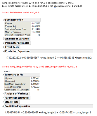e.g. in my case of base_length, since the middle factor level cannot be put in exact center if I use the coded units then I should put the 4.5 as 0.11 and not 0.