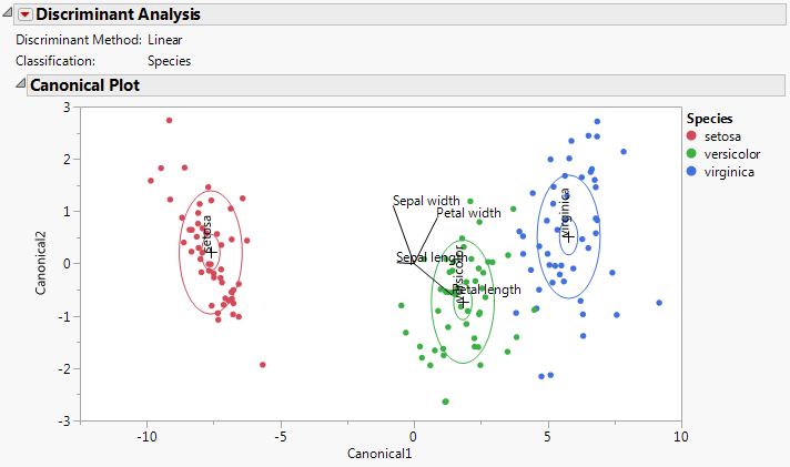 Thank you for your response. However, it is not the labels attached to the biplot rays that are my issue. The problem is the labels at the multivariate mean. In the below example from the JMP website it is the vertical labels for 'setosa', 'versicolor', 'virginica' that I want to remove?