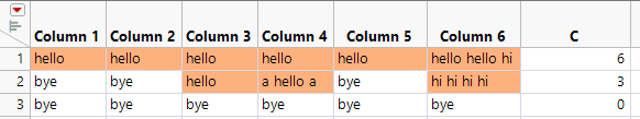 New Column("Column 6", Character, "Nominal", Set Values({"hello hello hi", "hi hi hi hi", "bye"}))