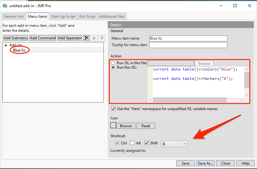 To test the functionality, select several points from the Graph Builder plot. selct some arrow keys, then select Home. A window of your selected yourw will appears. Make another set of selections, and click on Home again.
