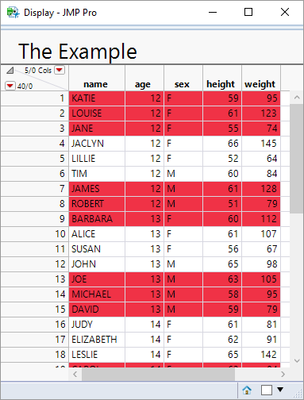 I can pre-select every alternate block of three rows with the "<< set selected rows()" property, but that coloring pattern would then be lost if the user were subsequently to click on any of the rows or otherwise select/deselect them. I've therefore applied the same property within the "<< set row change function" property - so if the user clicks anywhere on the table, the shading is immediately reapplied. I end up with something like this:
