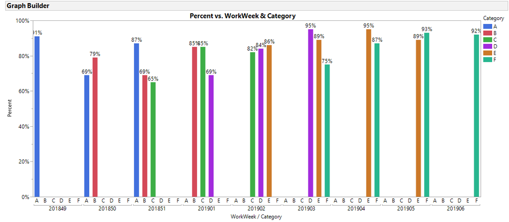 Plot #4 - Number of Bars Reduced (no empty categories) & Bar Width ReducedThe stacked table with the new columns and a script are attached. The saved GraphBuilder script for each of the 4 plots is included.