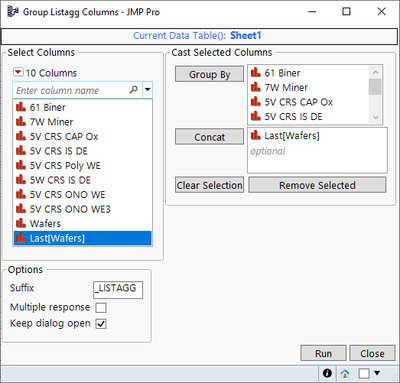 I would like to make a summary of table in SHEET1 and include Wafers in it. My desired output column is in SHEET2. I wanted to develop a script which can give me output like SHEET2. Note SHEET2 is summary of SHEET1. In Sheet2, I wanted wafers to be separated by comma. The wafers should be num(right(Wafers,2)) in the SHEET2.