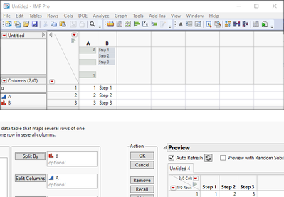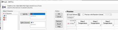 I split column "temperature" by column "steps". The final column names are "Temperature Step1", "Temperature Step2"...