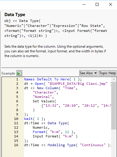 I have a column of seconds starting from 0 which increments by 1 second for each row. (0, 1, 2, 3, etc...). I was looking for a way to convert these times in seconds into a HH:MM:SS format. I came across this post: https://community.jmp.com/t5/Discussions/Date-Time-Format-Problem/td-p/52831 where a few ideas were suggested and I was wondering which approach would be the best to take. It doesn't have to work for the whole column, even being able to convert one time in seconds to the HH:MM:SS format would be useful. I want to do this solely using JSL.