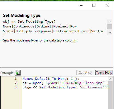 So following Jim's solution, first change the Data Type to Numeric and the Modeling Type to Continuous. Then continue with his detailed step-by-step instructions.