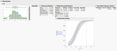 The distribution profiler shows the confidence interval, not the tolerance interval (at least it does that with my installation). This might explain why you are seeing 99.9959% "confidence" (not tolerance) for a value of 2.114196.