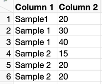 I process a lot of data sets with a unique format. They contain a matrix of data with a corresponding "map" of their labels. I've made a simplified version here as an example. The sample labels are in the first rows, followed by the data itself.  For example, Sample 1 was measured 3 times and results are 20, 30, 40.