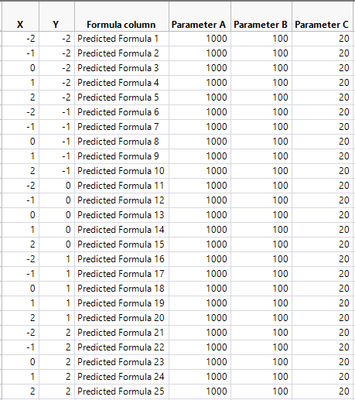 I have a DOE table with many predicted formula, these formulae have X, Y axis relationship