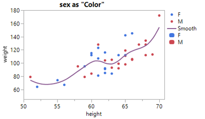 Day 1 with JMP and a user wants to generate a point plot with 2 different colors for male and female: