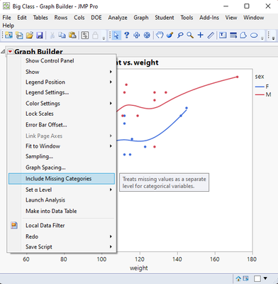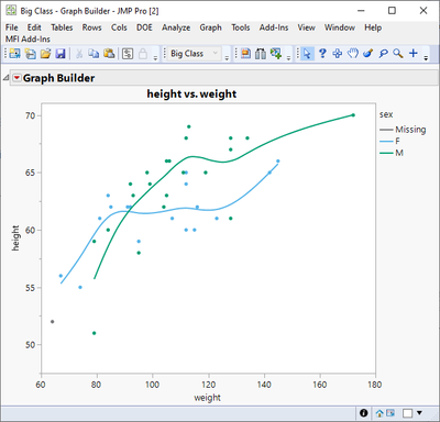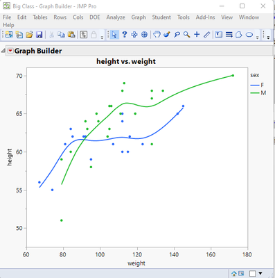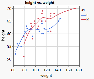 Variables( X( :weight ), Y( :height ), Color( :sex ) ),