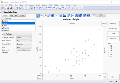 Variables( X( :height ), Y( :weight ), Color( :age ) ),