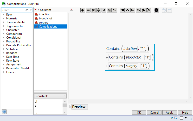 theExpr = "dt << new column(\!"number of complications\!", formula(sum(" ||