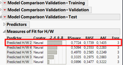 1) I have a DOE and some boosted neural network models that I would like to compare their respective Rsquared (largest), RASE (smallest) and AAE (smallest) to select the best optimized models from my experiments.