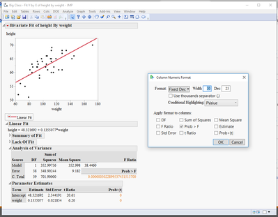 The reason why you see 0e+0 is most likely that the number of leading zeros after the decimal is higher than what you asked to display. Then JMP or any other software can only represent what is given by the calculations which is 0 then.