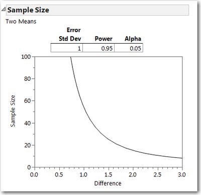 Nonetheless, OC-like charts can be easily generated in JMP by entering one of the three inputs (like Power, for instance) in the Sample Size and Power platform under the DOE pulldown: