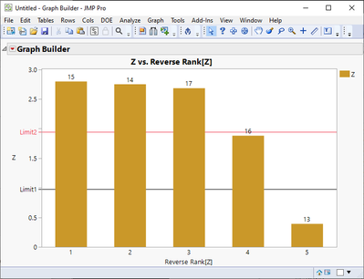 Creating bar chart in JMP with reference lines and labels is easy. It might be more difficult to figure out where you can get those specific t-values calculated. Good starting point on how to use JMP (in my opinion) is checking out the help documentation https://www.jmp.com/support/help/en/17.2/, there are also a lot if different videos in community.