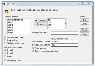 where there are four members to each treatment group (with their order changing randomly each day) and a set of measurements for each day (d20, d21, d22 etc)
