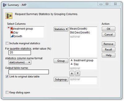 Hi, I have groups of mice, with tumours. Each group gets a specific treatment and tumour growth is measured daily. At the end of the experiment I have data for 3-4 groups, each group consisting of 4-5 mice, how do I create a graph of the data with one line for each group using the average daily measurements for the groups as the points on the lines?