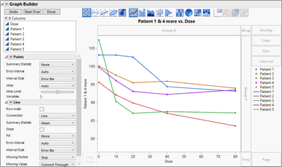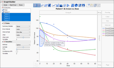 e) Drag Patient 2, Patient 3, Patient 4, and Patient 5 to the Y zone, dropping just inside the axis to add the variables.