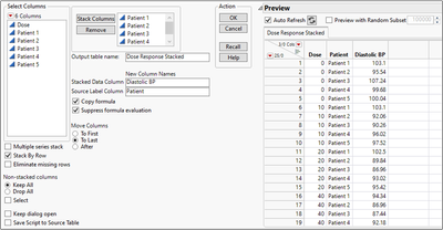 c) Select Patient 1 through Patient 5, then click Stack Columns.