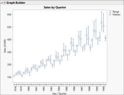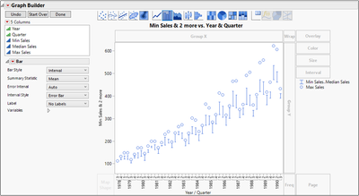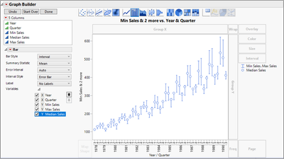 e) Drag Min Sales, Median Sales, and Max Sales to the Y zone.