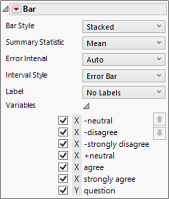l) Repeat the previous step to order the X variables appropriately: -neutral, -disagree, -strongly disagree, +neutral, agree, strongly agree.