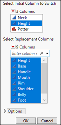 n) Again, click the red triangle next to Graph Builder and select Redo > Column Switcher.