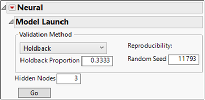 Note: JMP Pro has the capability of adding nodes of other activation functions. If you have nonstationary data collected over time, that is, if the mean is drifting over time, it is recommended to add one linear node as well. For this data set, because the autocorrelation is stationary, adding one (or more) nodes with linear activation functions does not improve the predictive power of the model appreciably.