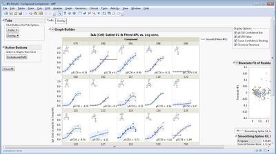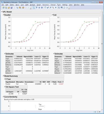 This add-in helps you analyze and compare multiple bioassay curves fit with a 4-Parameter or 5-Parameter Logistic (4PL/5PL) model.   It calls the Nonlinear platform behind the scenes to fit the models to each curve and then creates a variety of graphical and tabular results.