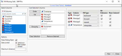 FMC:fill_missing_cells(DataTable("report"), "RM Description", "", {}, "backward", -1, ., 1)Are there some edits that would allow it to run automatically?