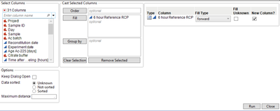 | Data sorted | Possibility to choose if it is know that data is sorted. Makes script faster | Unknown, Not-sorted, Sorted |