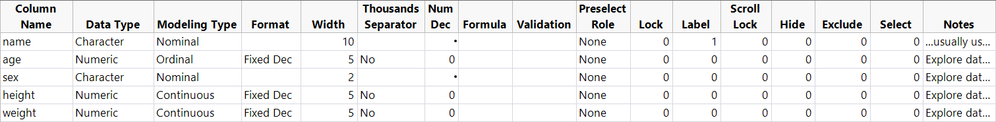 JMP Attribute Table