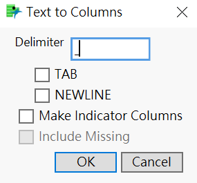 圖九, 利用Co>Utlities >Text to columns去做參數的拆分