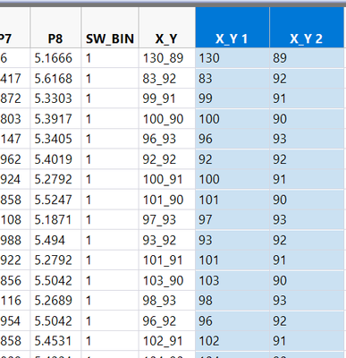 在完成上述資料表的整理後,我們發現CP 的位置參數X和Y,原本是合併為一個參數(圖八),我們可以選定此參數後利用Col功能列表下的Utlities >Text to columns去做參數內容的拆分(圖九)。